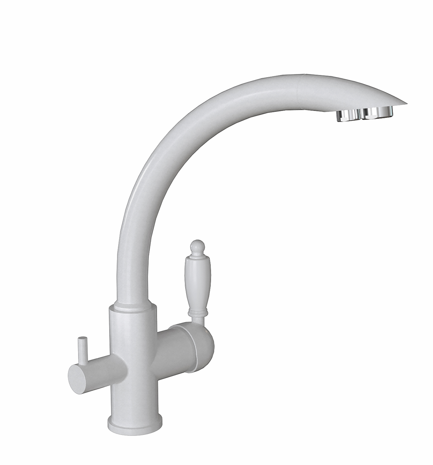 Смеситель однорычажный с подключением к фильтру питьевой воды;Керамические ручки;Материал - латунь;Поворотный излив;Керамический картридж 35мм;Гибкая подводка
