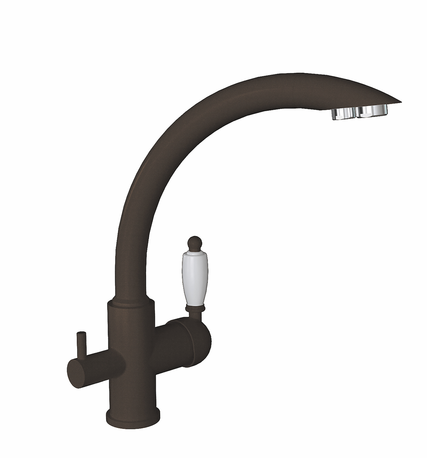 Смеситель однорычажный с подключением к фильтру питьевой воды;Керамические ручки;Материал - латунь;Поворотный излив;Керамический картридж 35мм;Гибкая подводка