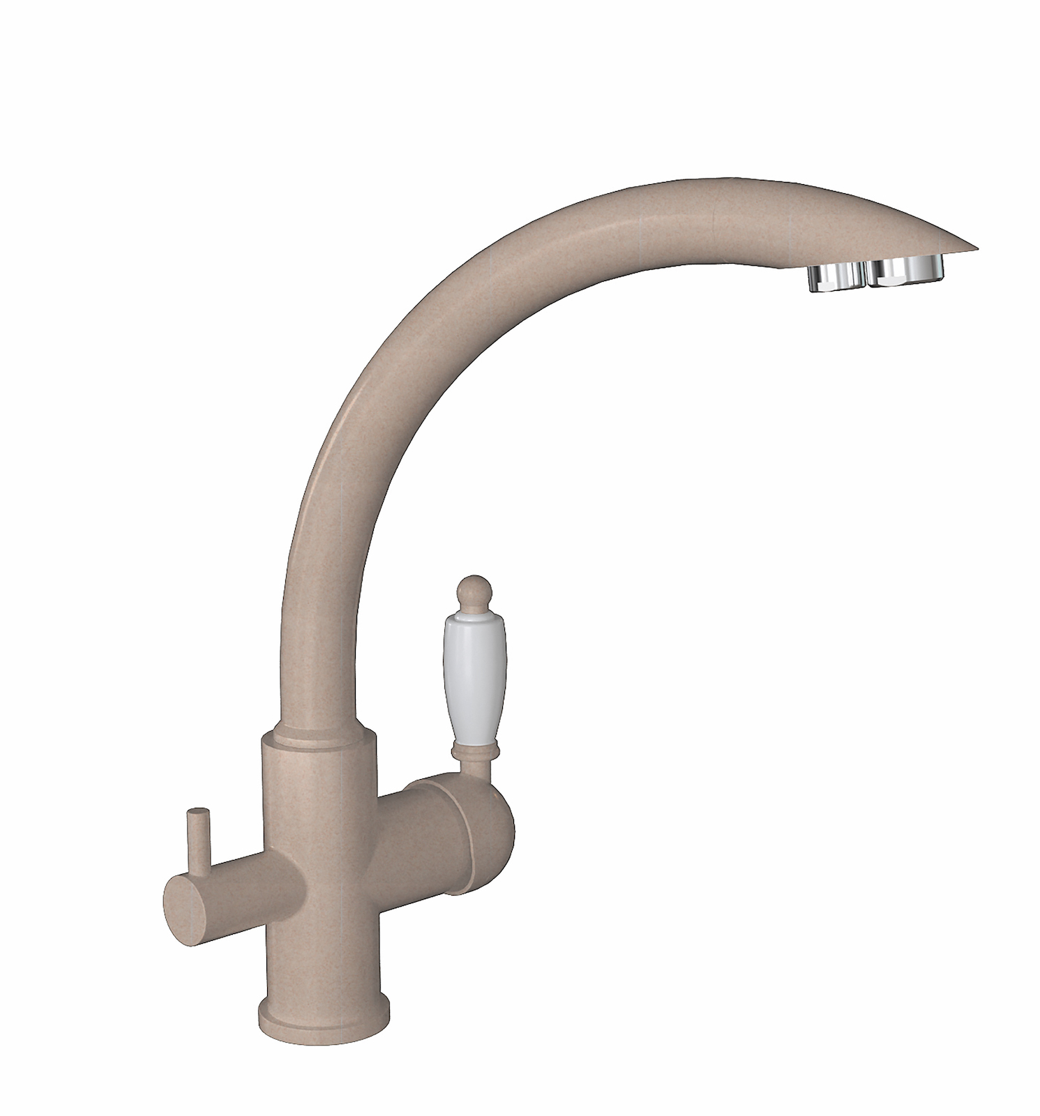 Смеситель однорычажный с подключением к фильтру питьевой воды;Керамические ручки;Материал - латунь;Поворотный излив;Керамический картридж 35мм;Гибкая подводка