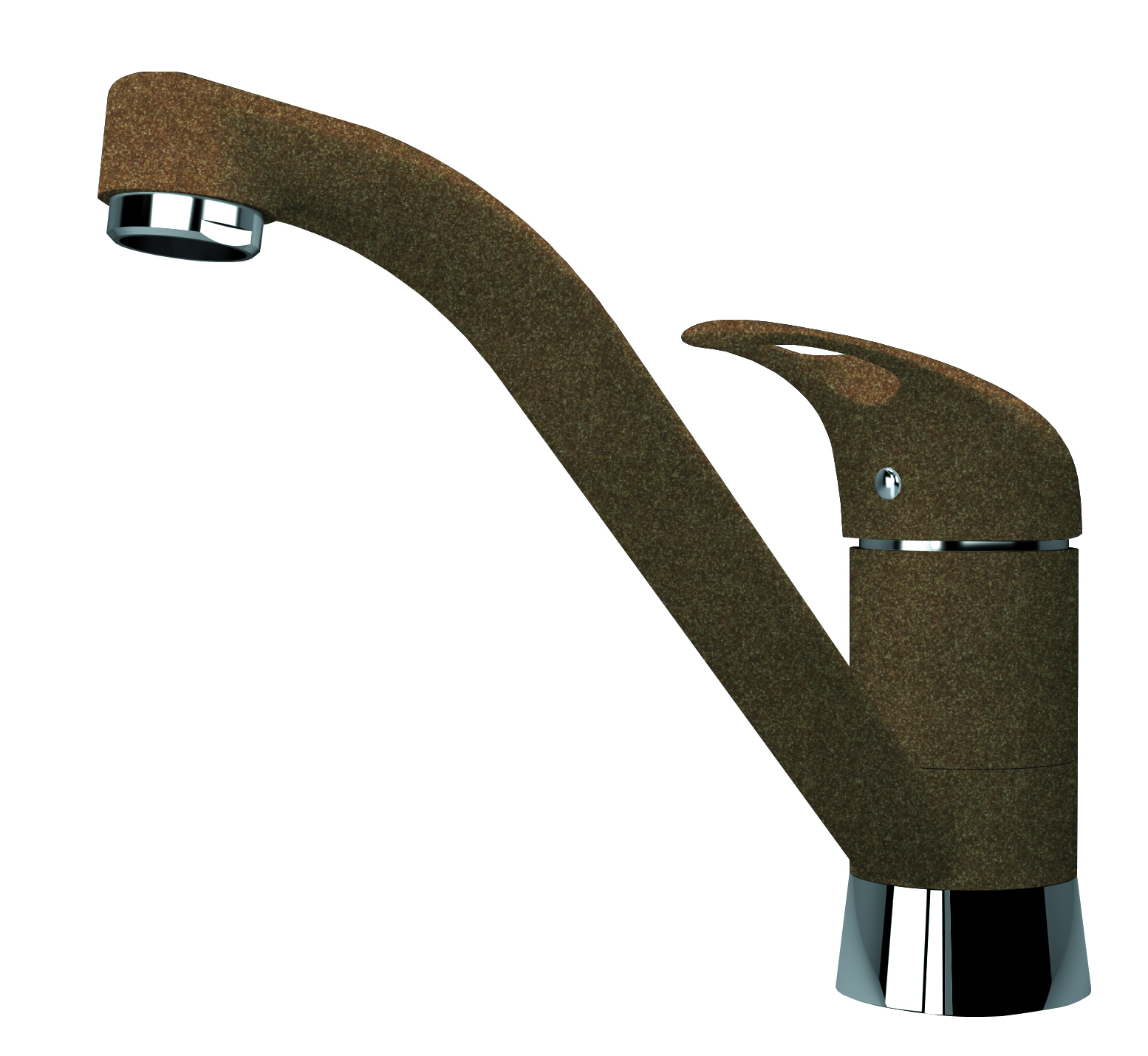 Смеситель однорычажный с низким изливом;Материал - латунь;Поворотный излив;Керамический картридж 40мм;Гибкая подводка