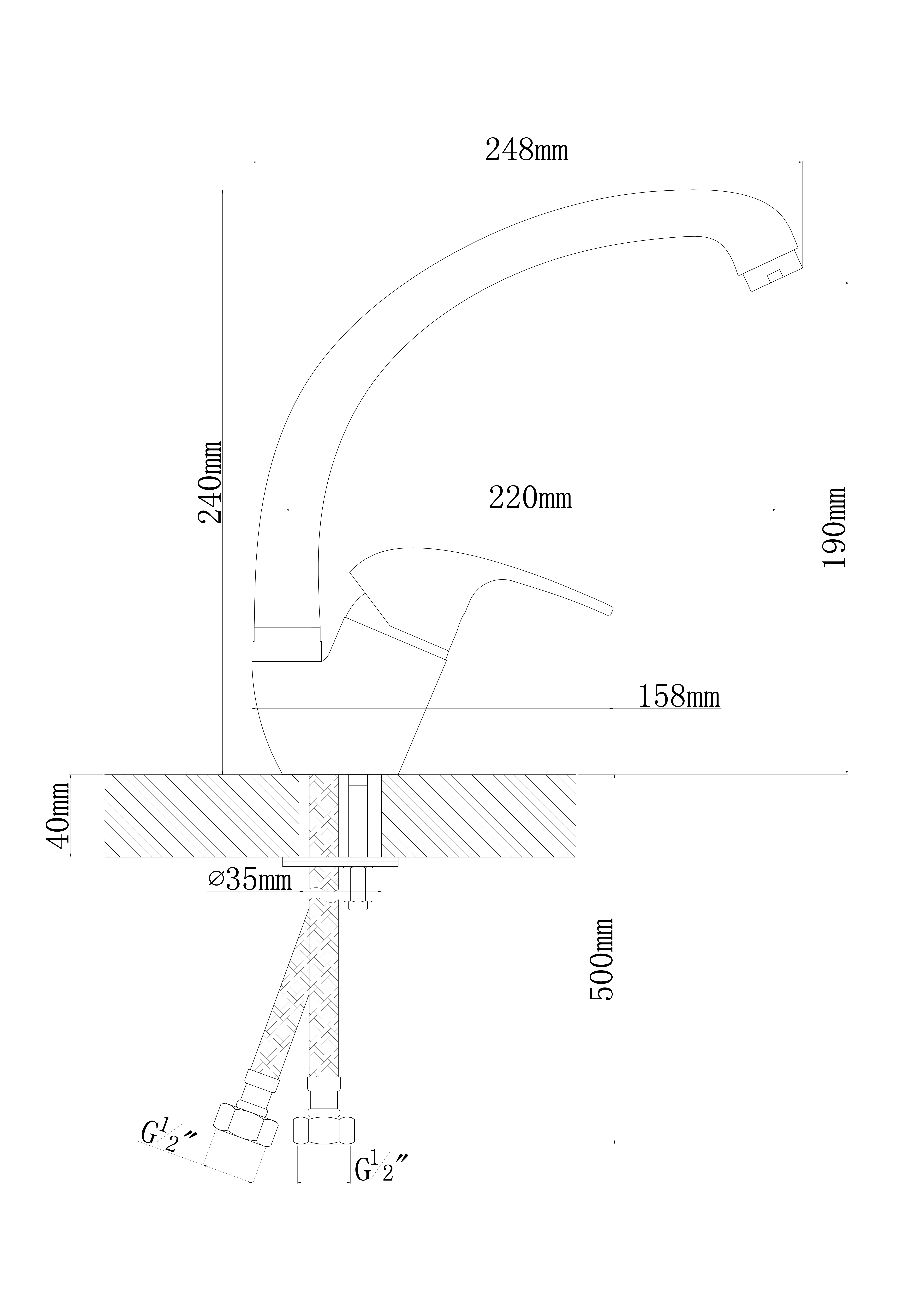 Смеситель однорычажный;;Материал корпуса - латунь;;Поворотный излив;;Керамический картридж 40мм;;Гибкая подводка;