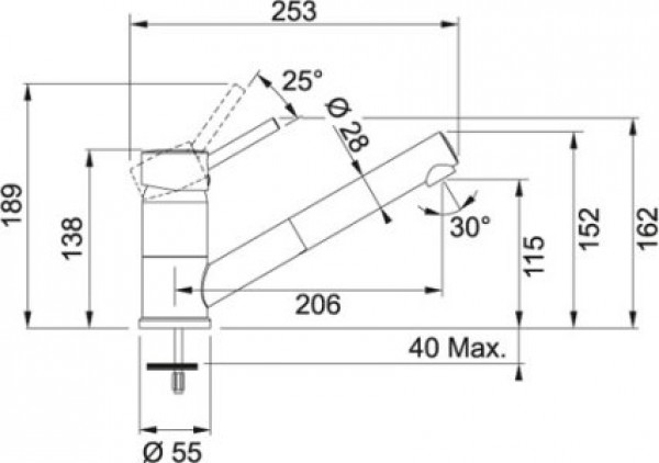 -Угол поворота излива 120град. -Керамический дисковый картридж