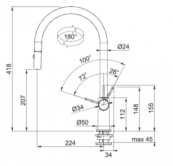-Угол поворота излива 360град. увеличивает функциональность