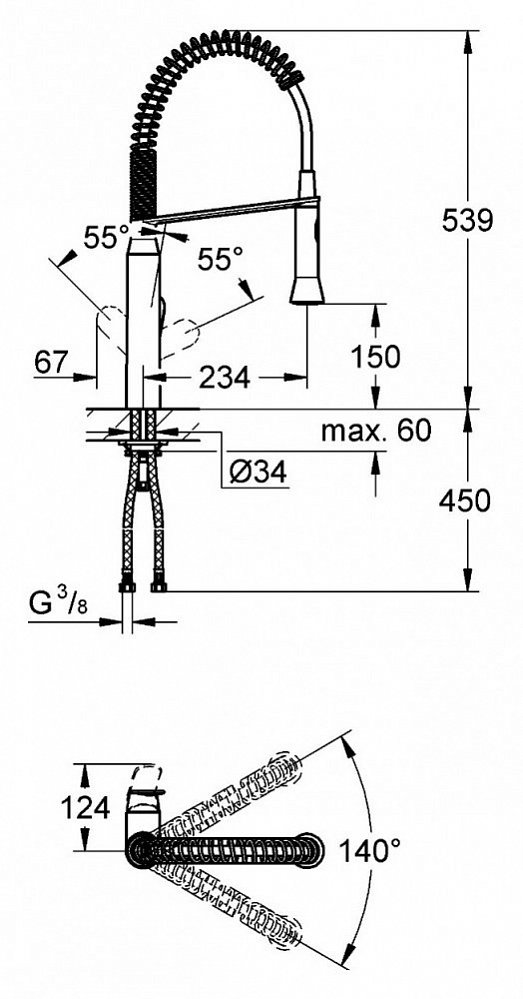 - Длина излива: 23.4 см