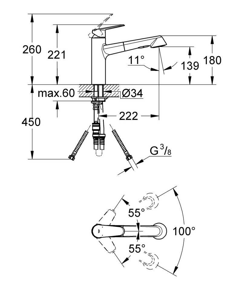 - Длина излива: 22.2 см