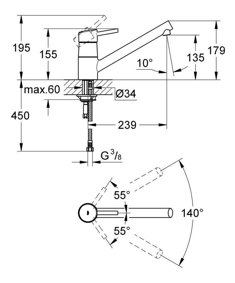 - Высота излива: 13.5 см