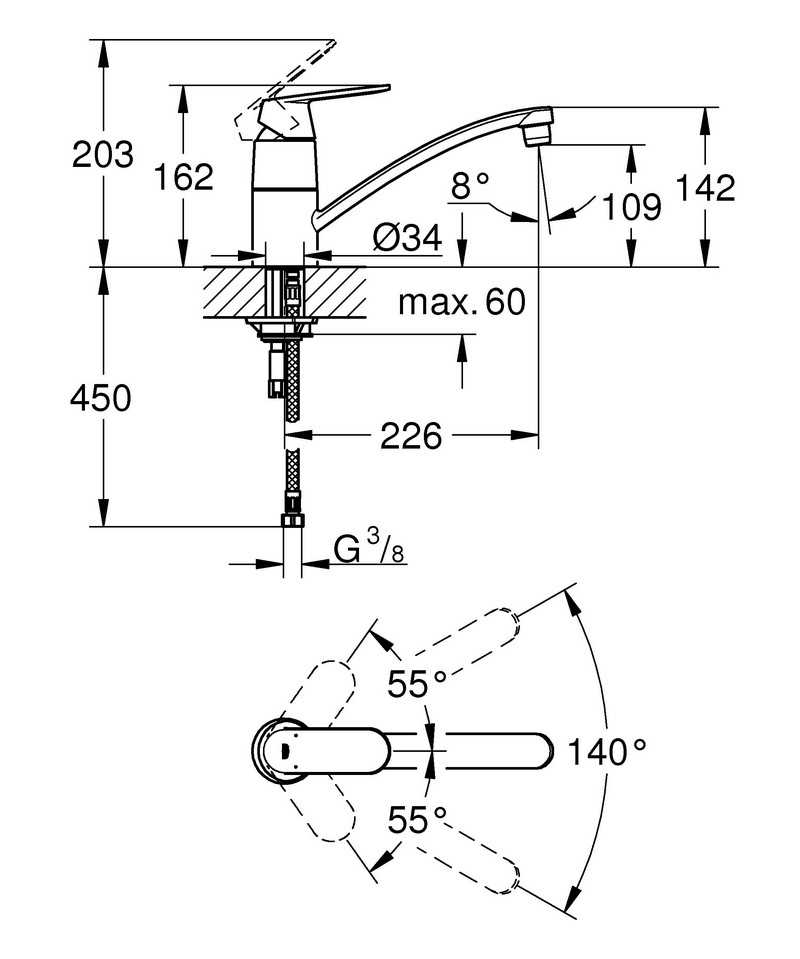 - Длина излива: 22.6 см