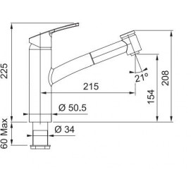 - Длина излива: 215 мм