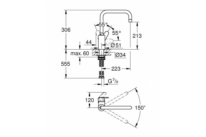 - Длина излива: 22.3 см