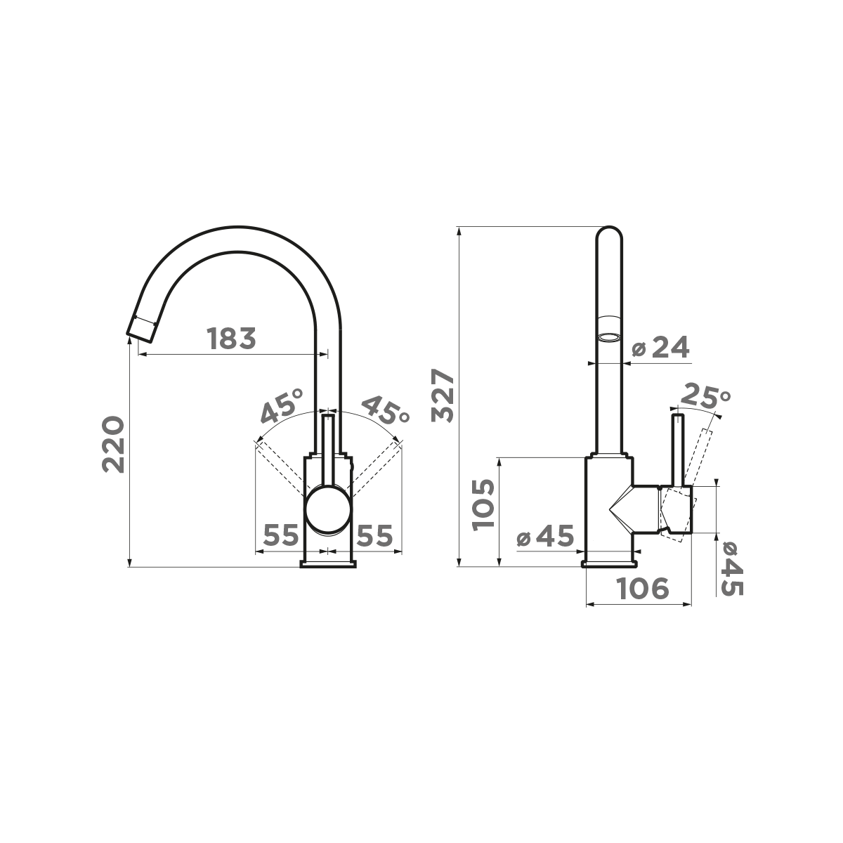 • Практичный однорычажный смеситель выполнен в современном стиле и снабжен высоким поворотным изливом;