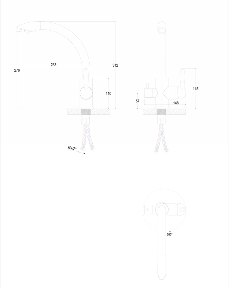 —Paulmark Смеситель для кухни ESSEN, никель, две воды, Es213001-NI