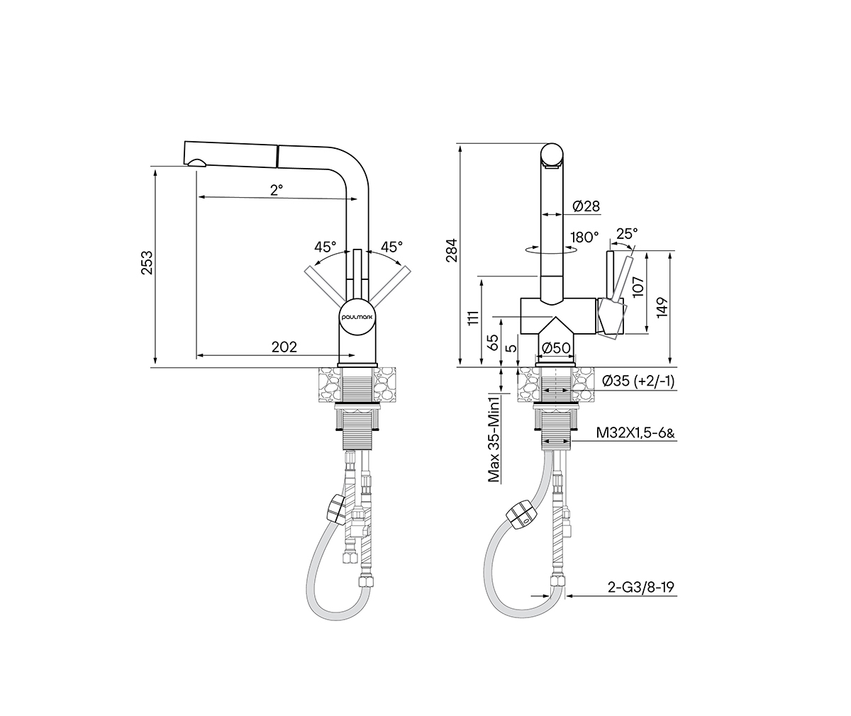 —Paulmark Смеситель для кухни Dosse, вороненая сталь, Do214418-GM